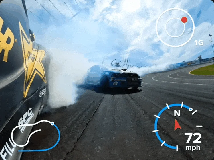 Nakładaj dane telemetryczne w postaci animowanych grafik w czasie rzeczywistym, aby wyświetlać prędkość, wysokość i inne dane w aplikacji Quik.