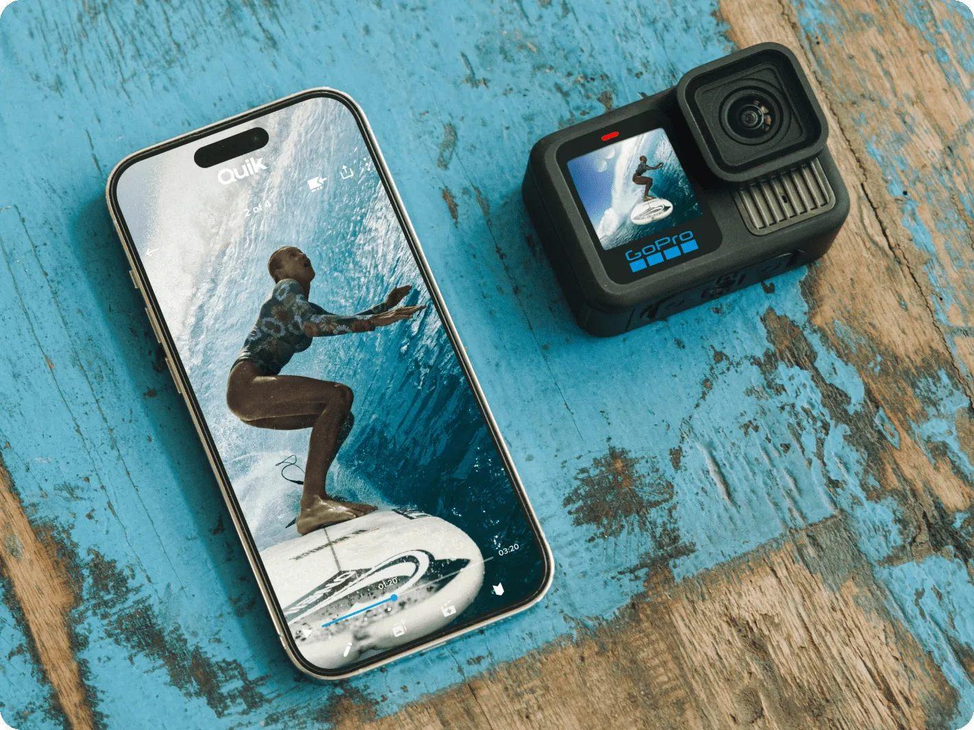 Bezprzewodowa synchronizacja wielu kamer HERO13 Black za pomocą kodu czasowego w aplikacji Quik. Kompatybilna z oprogramowaniem Final Cut i Adobe Premier.